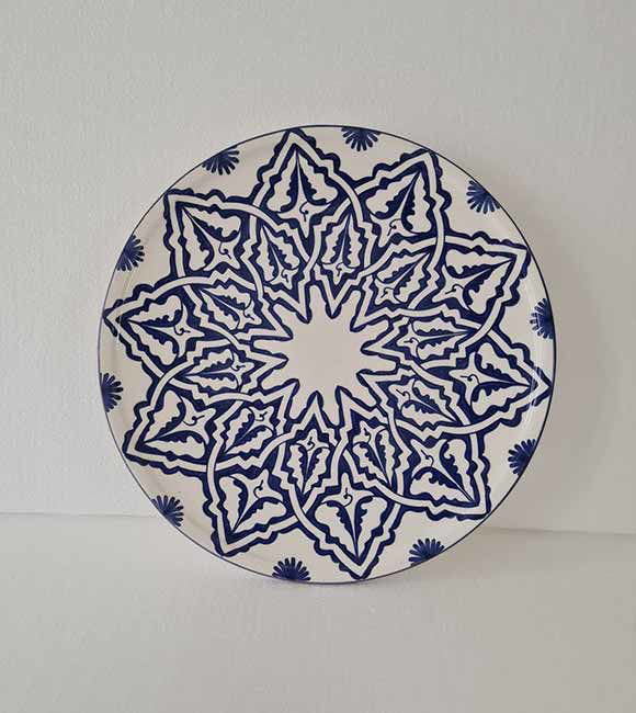 Each plate is carefully shaped from high-quality ceramic clay sourced locally in Fes, a city celebrated for its centuries-old pottery traditions. The surface is brought to life through hand-painting, stamping, and glazing techniques, resulting in vibrant colors, intricate motifs, and subtle variations that make every piece unique.
