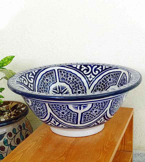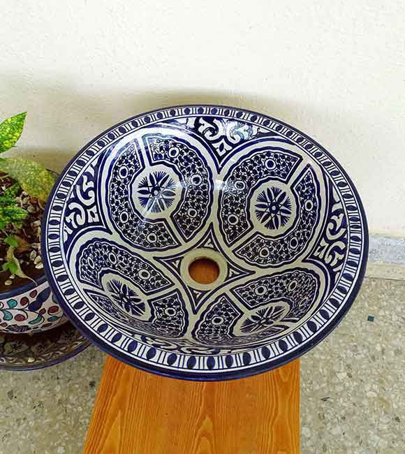 Bring home the timeless charm of Moroccan craftsmanship with this Blue & White Handpainted Ceramic Vessel Sink—a stunning piece designed to instantly refresh your bathroom décor. Made in Morocco using traditional pottery techniques, each sink showcases the iconic blue-and-white palette inspired by Marrakech’s vibrant sunlight, intricate motifs, and centuries-old artisan culture.