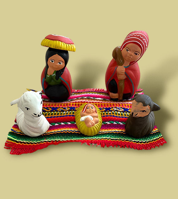 Ethnic Nativity Cusco – Handmade Peruvian Terracotta Nativity Scene | Folk Art Holy Family Ornament