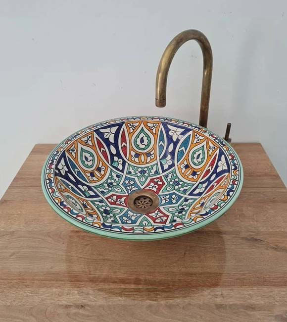 Bring home timeless Moroccan artistry with this Mid Century Modern Handmade Ceramic Sink—a beautiful blend of heritage and contemporary design. Crafted in Marrakech using traditional techniques, this BELDI basin captures the warmth, color, and intricate patterns that Moroccan craftsmanship is known for. Whether in your bathroom or kitchen, it adds a touch of elegance and personality to your space.