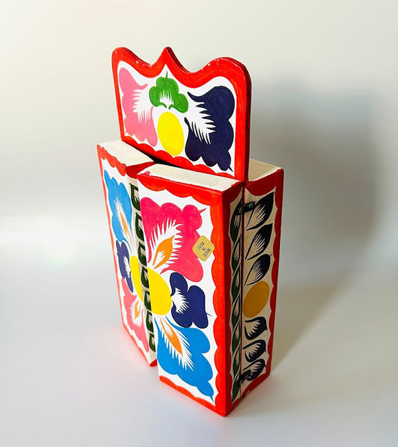 Crafted from locally sourced wood and Peruvian clay, each retablo is sculpted, assembled, and painted by hand. Natural pigments are used to create the vibrant color palette, adding authenticity and timeless beauty to this traditional art form.