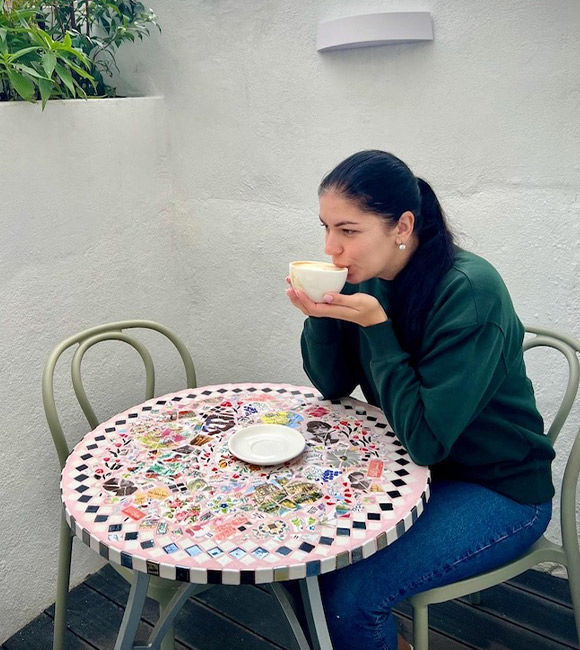 This hand-crafted, highly original tabletop is a fun conversation piece for any room or garden or patio! Perfect for the garden, dining room, kitchen, patio, terrace, it will bring good vibes to any space.