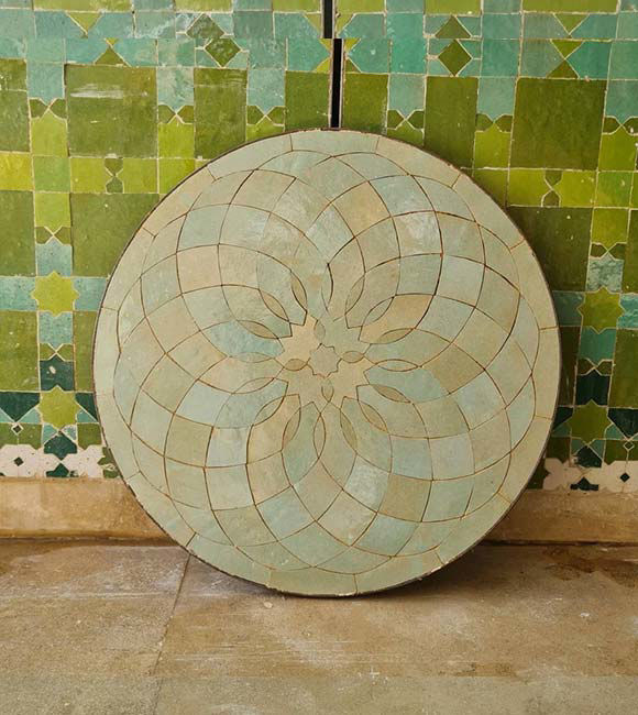 Bring timeless Moroccan charm into your home with this Natural Sage Zellige Mosaic Tabletop — a handcrafted masterpiece that adds elegance and authenticity to any setting. Designed by skilled artisans from Fes, Morocco, this tabletop beautifully reflects the rich heritage of Moroccan craftsmanship through its unique color palette and intricate geometric design.