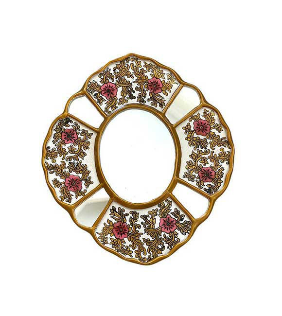 Shop handmade Peruvian floral mirror with carved wood and gold leaf finish. A round vintage-style wall décor piece for unique interiors.