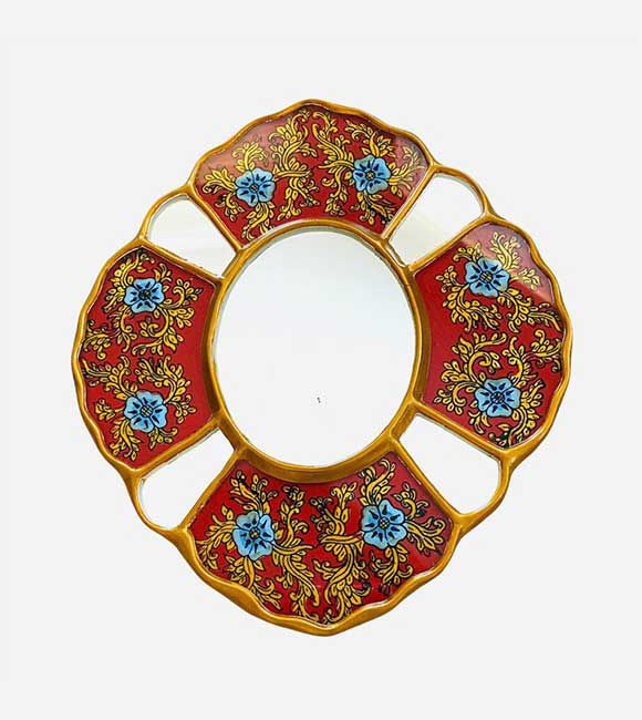 Add a touch of vintage charm to your space with this handmade Peruvian floral mirror, inspired by traditional colonial-era craftsmanship. Carefully carved from wood using Andean tools, this round mirror features intricate floral detailing and a radiant gold leaf finish—bringing warmth, texture, and artisanal beauty to any wall.