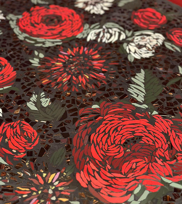✅ Handmade Artistic Design: Each red and gold rose tile is hand-cut and placed with precision.