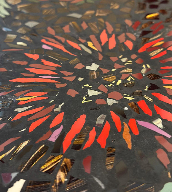 Designed and created using traditional mosaic techniques with a modern twist, each petal is hand-cut and precisely placed to form a rich, radiant pattern that glitters beautifully in the light. Whether you’re aiming for a vibrant indoor accent or an artistic outdoor table, this piece perfectly blends craftsmanship, durability, and glamour.