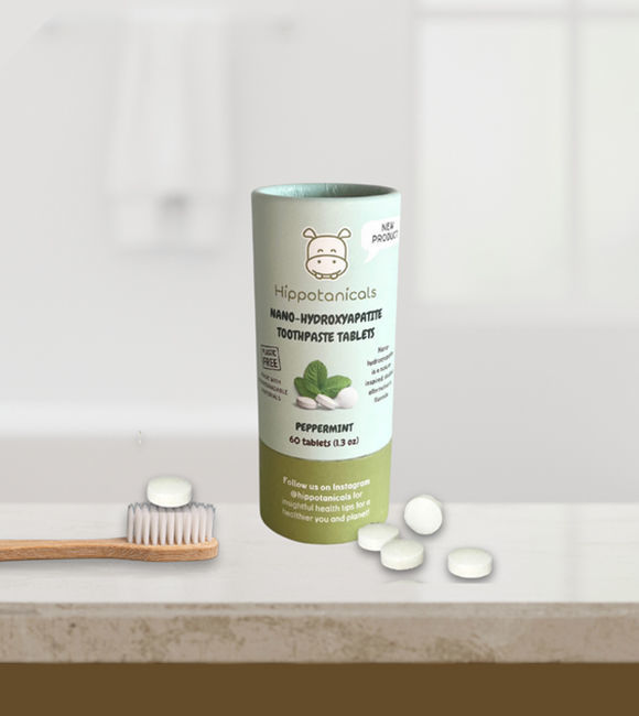 Meet the next generation of brushing: toothpaste tablets with hydroxyapatite, a mineral found naturally in tooth enamel. These gentle, mess-free tablets help clean and refresh your mouth—without plastic tubes or unnecessary additives. Each biodegradable cardboard tube holds 60 tablets, a one-month supply perfect for travel or everyday use.