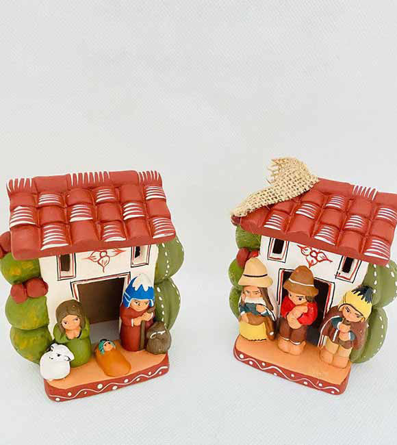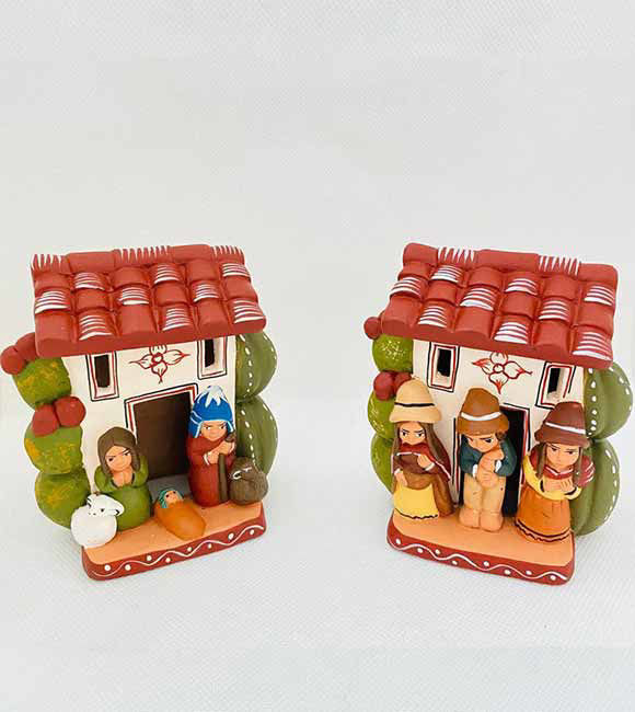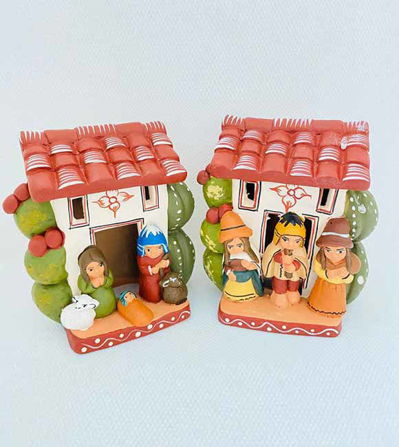 Vintage Nativity Scene Set – Handmade Peruvian Ceramic Folk Art Church Ornament (Set of 2)