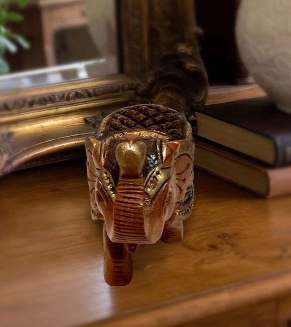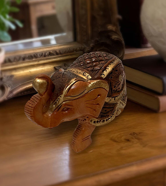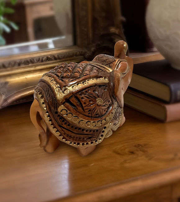 ✅ Hand-carved wooden elephant showpiece with raised trunk