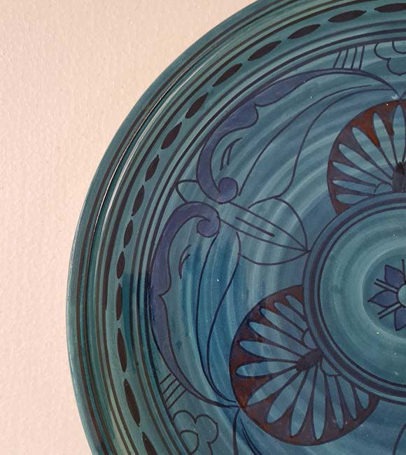 Each plate is shaped by hand using organic red clay sourced locally in Fes—an area globally known for its centuries-old ceramic heritage influenced by Berber and Moorish traditions. After careful shaping and kiln firing, the plate is hand-painted using natural pigments and finished with a glossy glaze that enhances both durability and visual depth. No two plates are exactly alike, making each piece truly one of a kind.