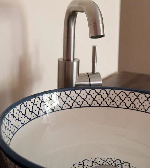 Each bowl is completely handcrafted by skilled Moroccan artisans, making every piece one-of-a-kind. Your sink may have slight variations from the photos—this is part of the charm and authenticity of handmade craftsmanship.