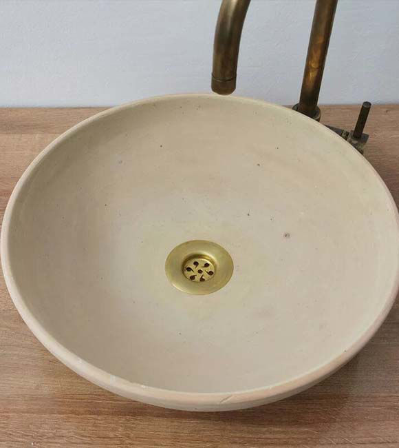 Add a touch of timeless artistry to your bathroom with our Custom Made Patina Raw Clay Handcrafted Vessel Sink. This round ceramic basin combines minimalistic design with intricate Moroccan craftsmanship, making it a perfect centerpiece for both classic and contemporary interiors.