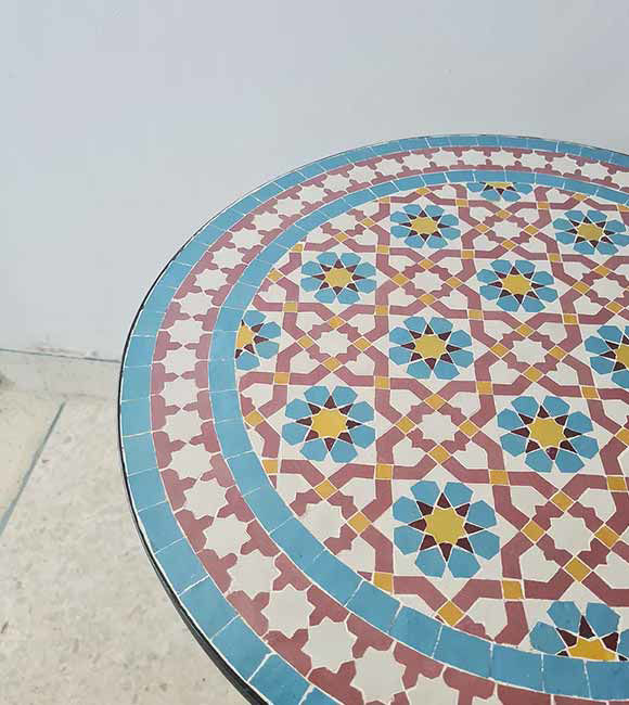 The result is a durable, weather-resistant mosaic surface that is suitable for everyday use while honoring ancient Moroccan design traditions.