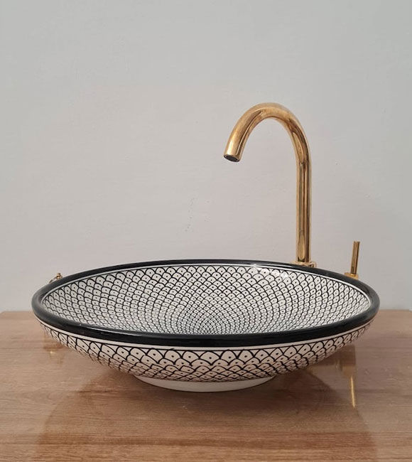 Known for their vibrant colors and intricate detailing, Moroccan sinks bring warmth, individuality, and authenticity to any bathroom or vanity space. This shallow-shape ceramic sink makes the perfect focal point for antique-inspired interiors as well as contemporary, personalized designs.