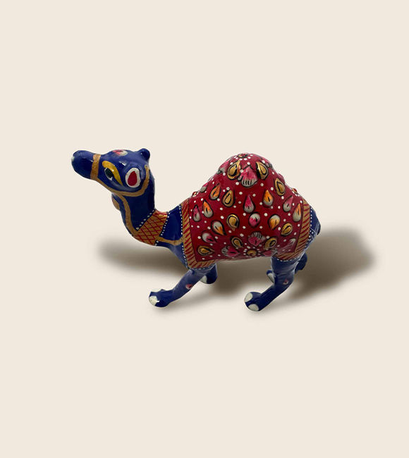 Bring a burst of traditional desert artistry into your space with this handcrafted enamel-style camel showpiece. Inspired by classic Indian metal craft and folk art patterns, this colorful camel figurine features detailed saddle motifs, hand-painted accents, and a glossy decorative finish that instantly stands out on any shelf or tabletop.