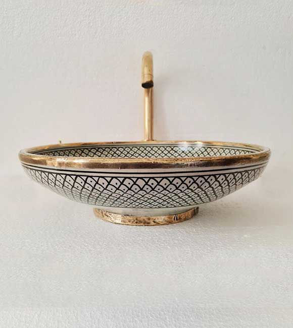 Elegant, Little sink straight from Morocco. This Moroccan sink is made in the traditional Moroccan technique. Technique from Marrakech is famous for the richness of design and patterns as well as for the intensity of colors which are so characteristic for Morocco bathed in sunlight. The Moroccan sink will definitely help you to obtain a more personal and individualistic style of you bathroom.