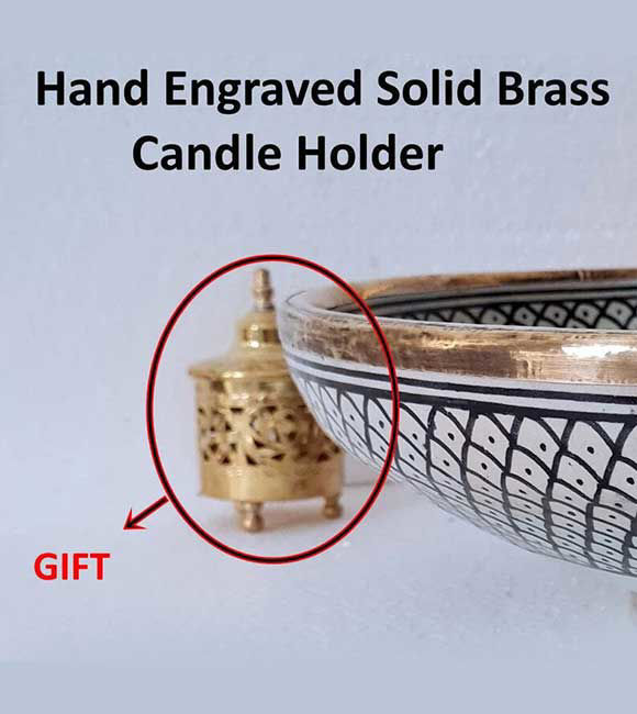 Because the basins are handmade by moroccan artist, which makes each of them unique, the basin delivered to you may slightly differ from the bowl presented in the photograph. In the photographs of the bowl you may see the reflections of light. The wash basin is built into a vanity unit and the rim of the bowl sticks out over the counter top. The sink makes one decorative whole with the counter top, which enhances the sense of harmony and elegant simplicity. The built-in wash basins are not only comfortable and practical in use but also extremely easy to clean. Perfect for small bathroom or kitchen. Our hand-painted sinks from Morocco will not crack nor loose paint shortly after installation, unlike low grade mass production printed sinks. The sink has a standard size drain.