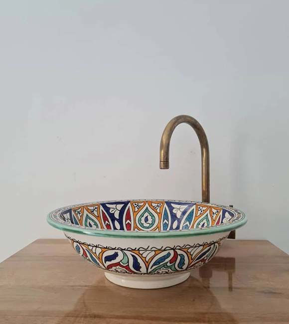 Handmade Mid Century Modern Moroccan Ceramic Sink – BELDI Washbasin for Vanity, Countertop & Bathroom Décor