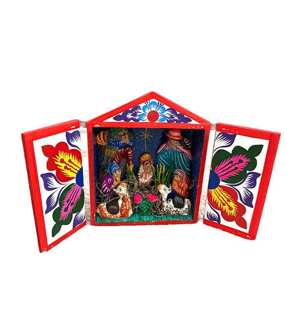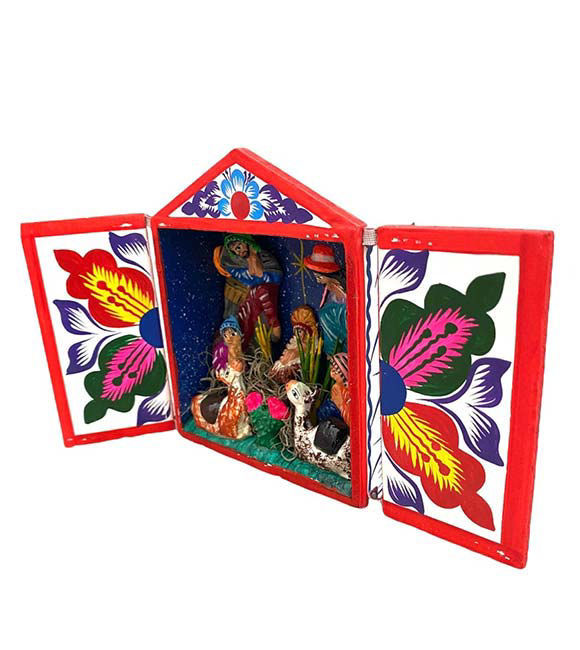 Made using wood, local clay, and natural paints, each retablo is entirely hand-styled and hand-painted, giving it a warm, authentic character. When opened, the retablo reveals the Holy Family in a beautifully composed Nativity scene, making it a meaningful addition to your Christmas décor, prayer corner, or holiday display.