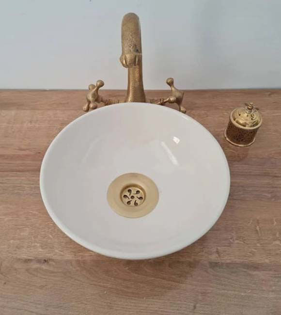 Minimalist Hand-Painted Ceramic Vessel Sink | Moroccan Handmade Washbasin Bowl | Modern Bathroom Countertop Basin