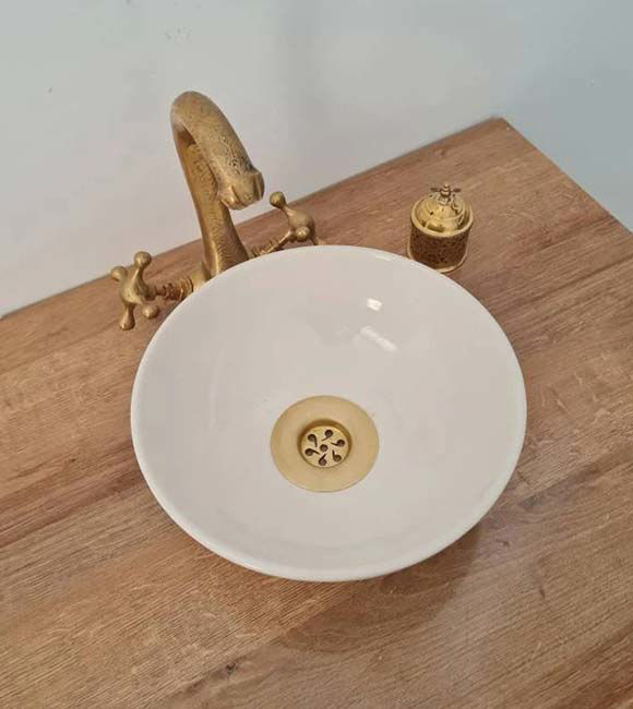 Made from Fes clay, found exclusively in the Ben Jellik region of Morocco. The process involves drying the clay for 20 days, hand-shaping it into form, baking at 2000°C for 8 hours, and finishing with hand-painted natural colors and a glossy glaze. Each sink reflects centuries-old Moroccan craftsmanship and artistry.