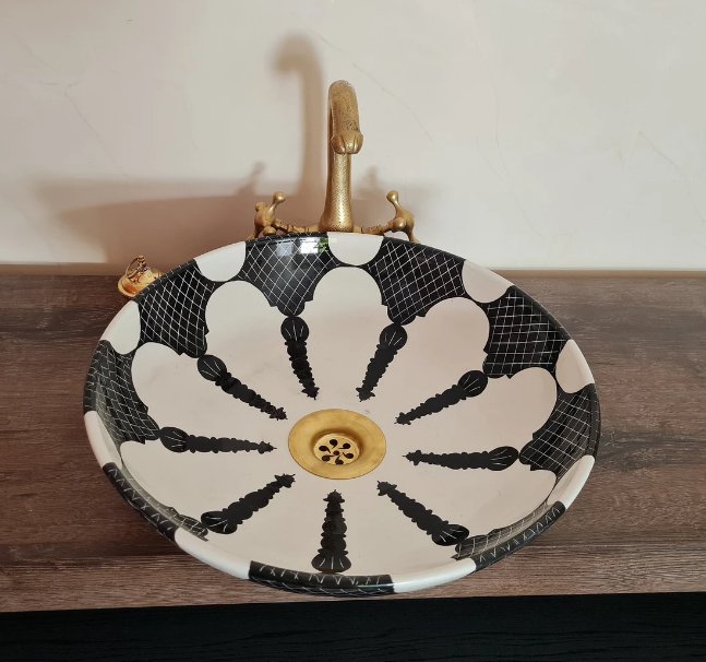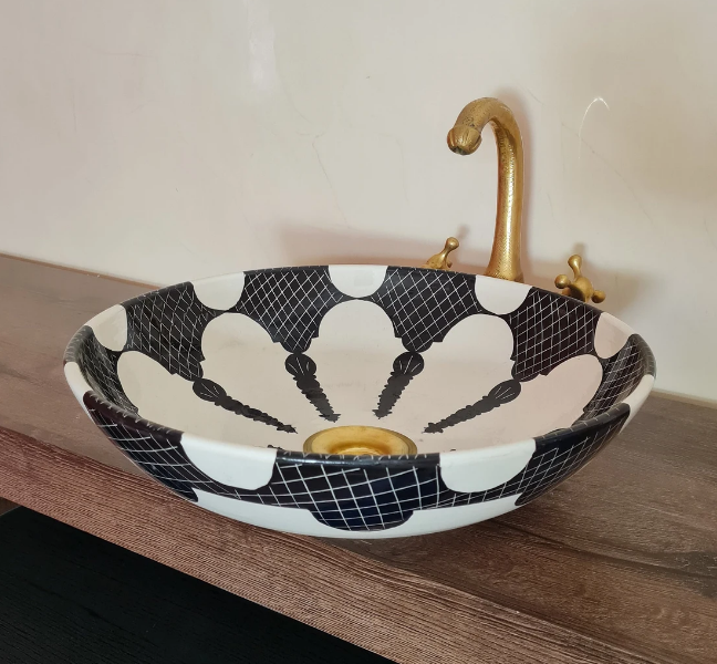 Artisans dry, shape, bake, hand-paint, glaze, and re-fire the sink using techniques passed down through generations, ensuring every piece is one-of-a-kind.
