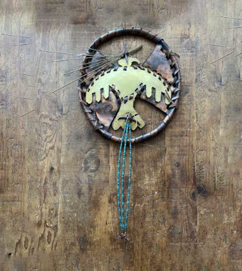 This is a stunning dreamcatcher with a majestic eagle design. The intricate details of the copper and brass Thunderbird, along with the beautiful beadwork, make this dreamcatcher a unique and eye-catching addition to any space. Hang it above your bed or in your living room for a touch of natural beauty and spiritual significance. Perfect for those who value both style and tradition